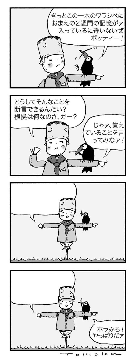 1 5 かかしのポッティー 「記憶・・・」 再掲。すっとぼけたカカシたちの寸劇。続き物もあるので気になったら以前のも見てね! #4コマ漫画 #イラスト #マンガ 23/02/12 08:42