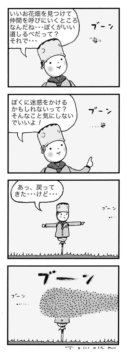 0 4 かかしのポッティー 「ブンブンブン」 再掲。すっとぼけたカカシたちの寸劇。続き物もあるので気になったら以前のも見てね! #4コマ漫画 #イラスト #マンガ 23/04/03 07:40