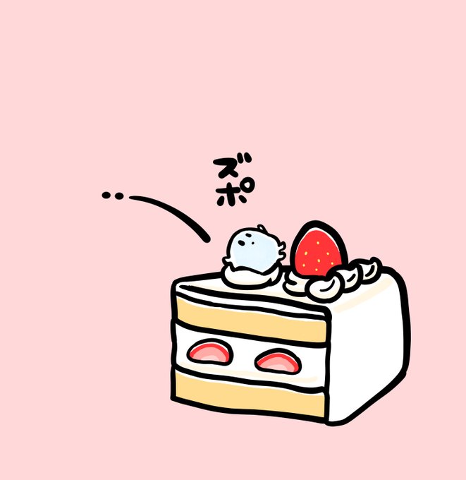 ショートケーキにポヨン、しっぱい。 #イラスト #ショートケーキの日