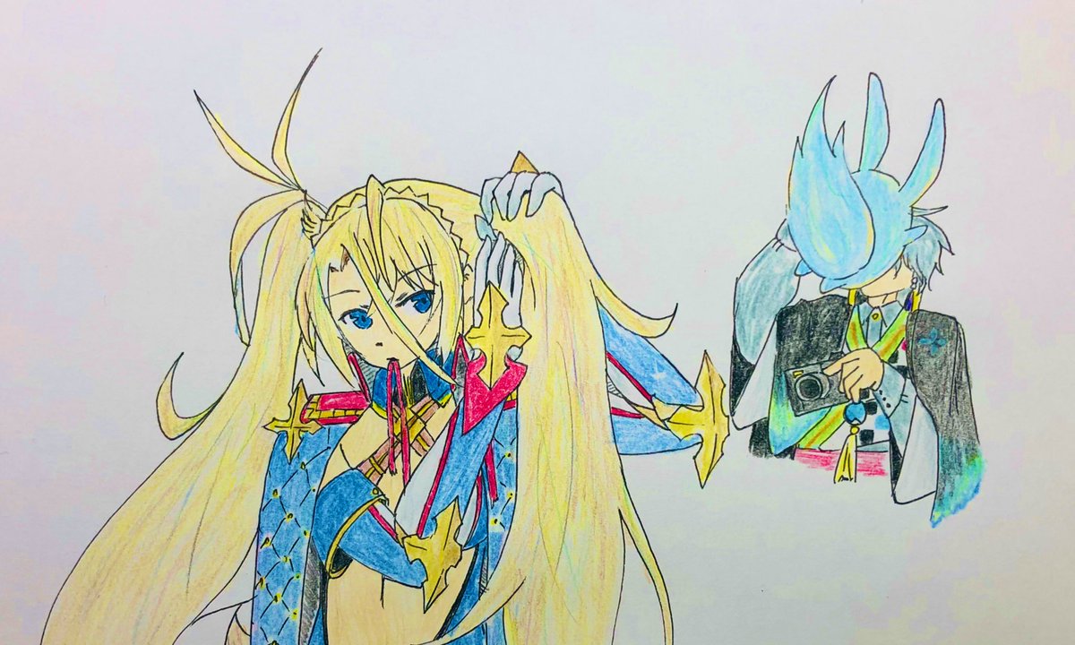 新衣装前に描いとこうと、 ポンコツみのないフレンをば。 関係ないけど、 カービィの真似すると 間接的にHN呼ばれるので よく天に召されてます。 あとツイートが 偶にいいねされては その都度死んでいる。 とりあえず今回は 重ね色がんばった٩( ᐛ )و パース…? 知らない子ですね…( #フレン見て