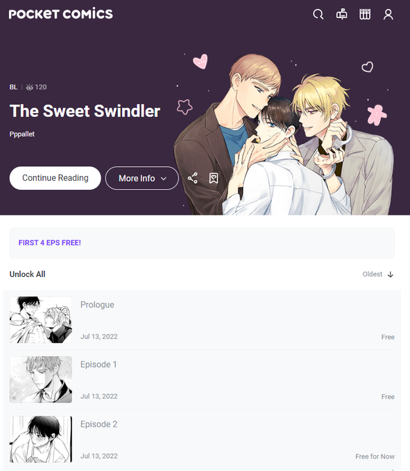 📢<The Sweet Swindler> have been opened in POCKET COMICS. Uploaded every Wednesday!😆 ✿ pocketcomics.com/comic/7864