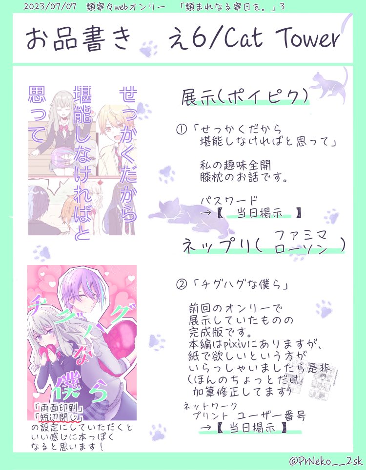 7/7開催の『類まれなる寧日を。3』に参加いたします。 展示とネップリやります! え6にてお待ちしてます。よろしくお願いします🙇♀️ #たぐるね3