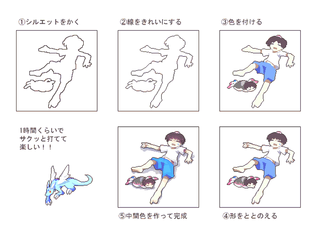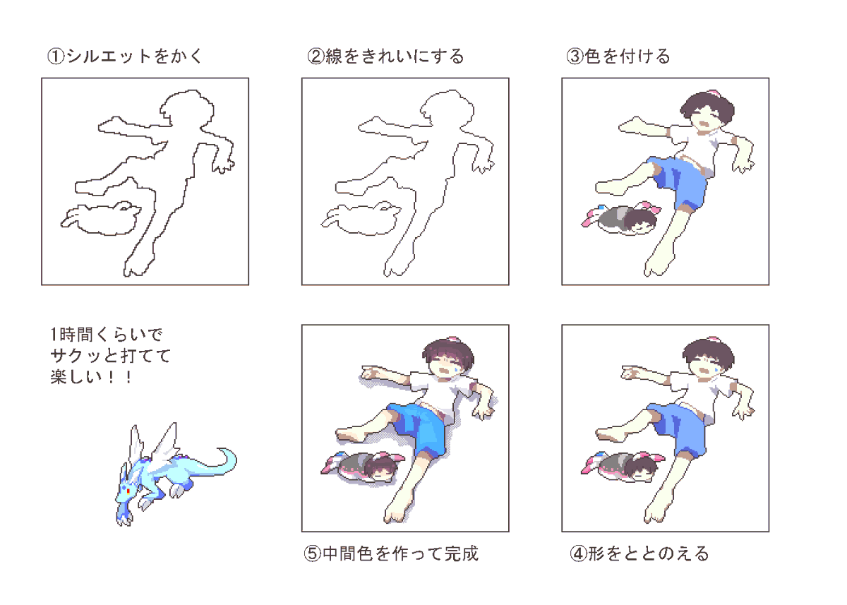 過去に描いた立ち絵をベースにして、色んなサイズのドット絵を打ってみたよ~💃🐲 #ドット絵 #pixelart