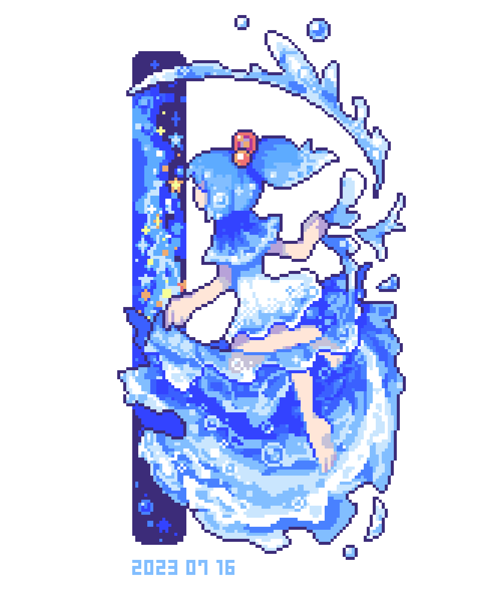 14 53 創作キャラのレナータちゃん!波間のドレス🌊 #ドット絵 #pixelart 23/07/16 21:14