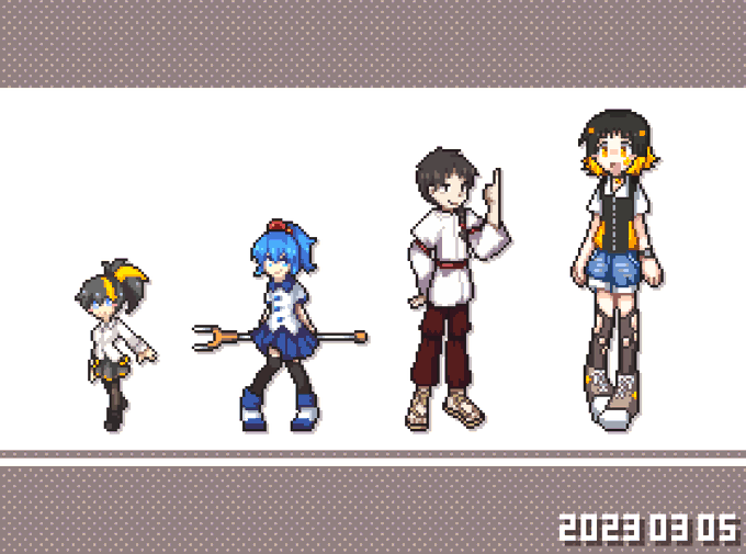 8 21 過去に描いた立ち絵をベースにして、色んなサイズのドット絵を打ってみたよ~💃🐲 #ドット絵 #pixelart 23/03/05 00:39