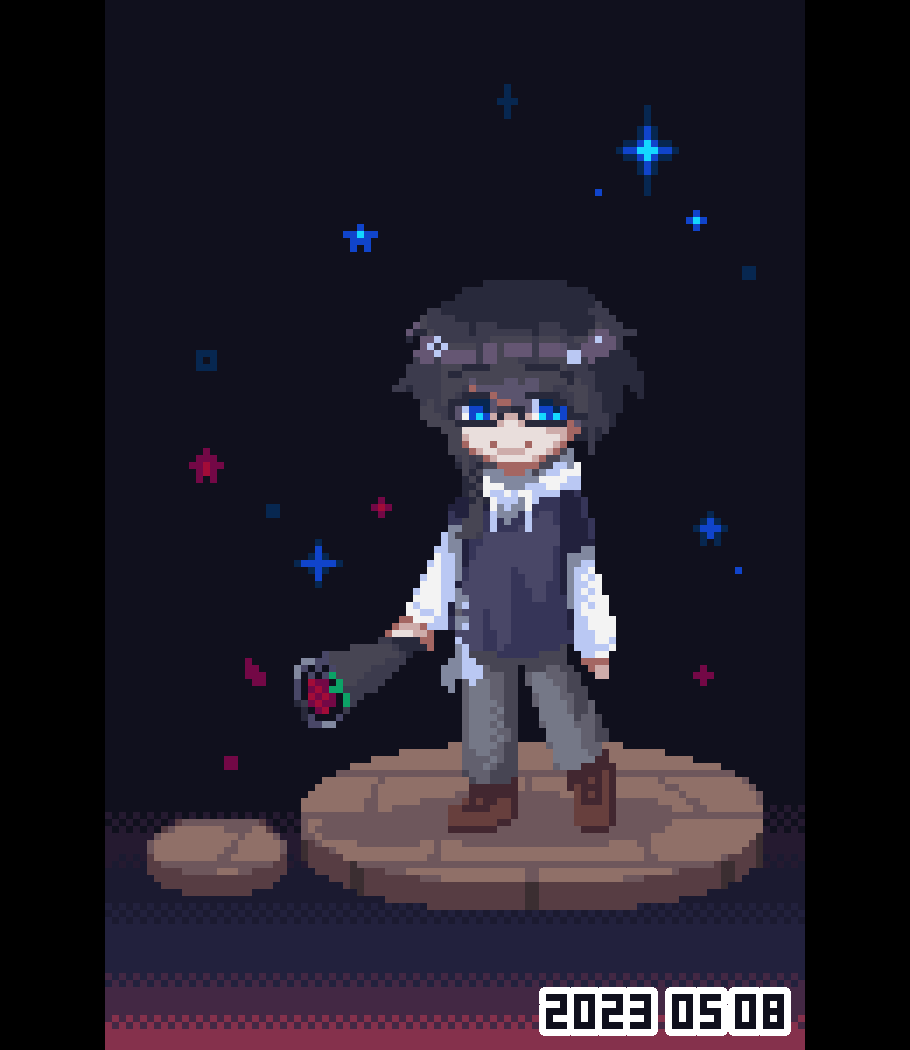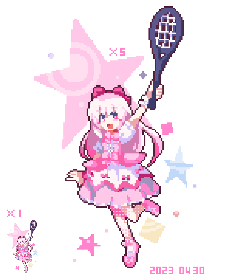 1 11 よその子をお借りさせてもらって描いたドット絵4🌟 色数多め🙌等倍サイズで表示するとめっちゃゲームぽくていい感じになる✨ #pixelart #ドット絵 23/05/02 08:12