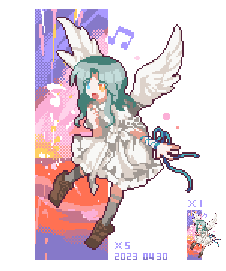 4 21 よその子をお借りさせてもらって描いたドット絵2🎶 布っぽさがいい感じに出来て満足~!🐦 #pixelart #ドット絵 23/05/01 06:26