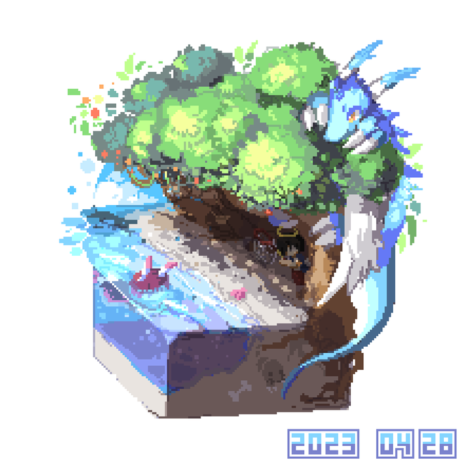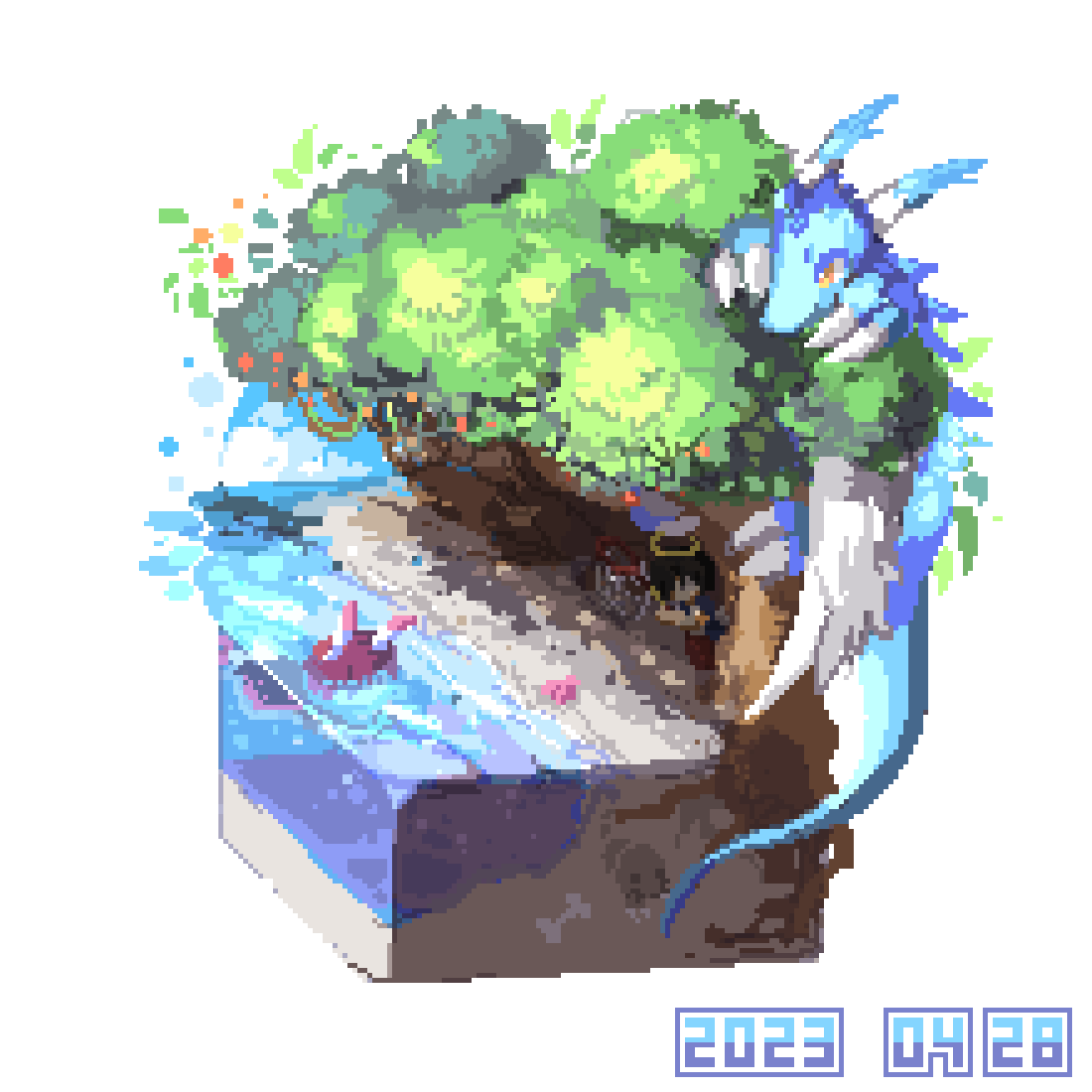 5 27 色数自由でドット絵ヴィネット🎶 透明な海に行きたいな~🌊 #pixelart #ドット絵 23/04/28 07:03