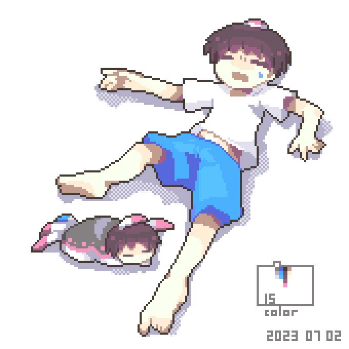 7 44 よその子をお借りさせてもらって描いたドット絵🌟 色合いハッピーで楽しい感じ~!🙌✨ #pixelart #ドット絵 23/05/01 06:24