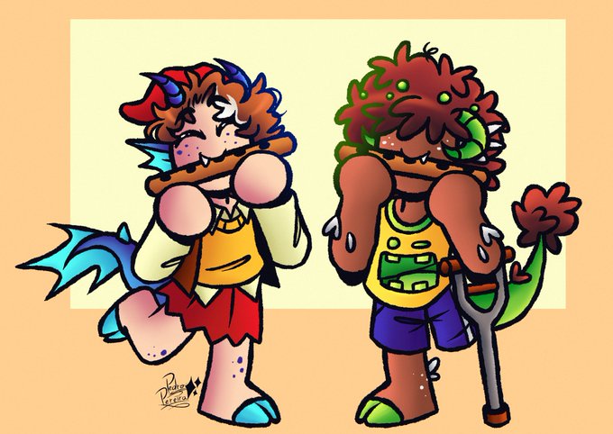 [🐕🧤Inui & Shikabane👾🦨] - Minhas personagens favoritas da série humanizadas 💛💜 #Aggretsuko #Fanart