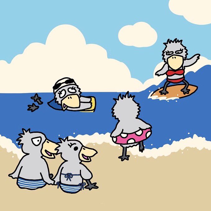 🐦『こんばんは、ハシビロコウのくっくです☺️ 今日も、じめ〜とした中、お庭で、ぐでぇ〜っとなっていたのですが、今年初めてセミの声を聞くことができました🎶おかげでちょっとカラッとした気分になれました🥰アサ姐は水浴びしてました👙』 instagram.com/p/CgCWDPzvV-u/… #イラスト