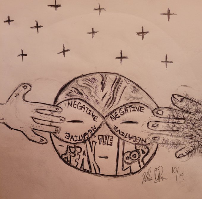 Day 19 Prompt: Loop Title: Breaking the [Negative] Loop #inktober #inktober2021 #Loop #MentalHealthAwareness #negativetopositive #quickdrawing