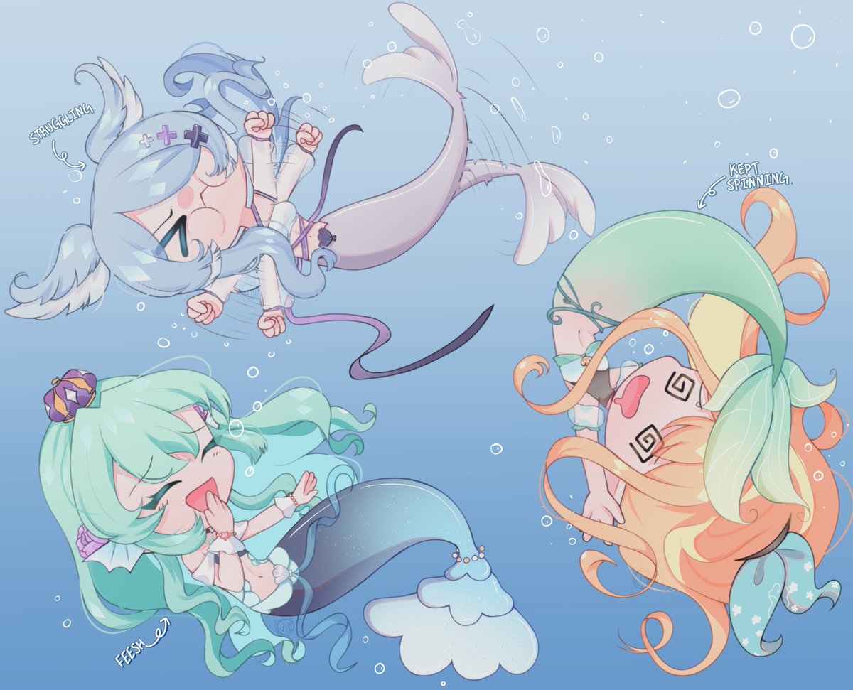 Lazulight Mermaids in MerMay! WOOOO! 💚💙💛 #Lazulight #絵リーラ #pendorART #PomuPaint #Finanart #mermay2023