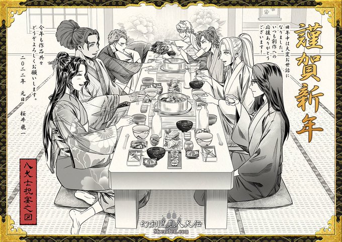 🎍あけましておめでとうございます!🐕 楽しさ溢れる一年になりますように🌸 今年は新しい挑戦も入れつつ、大きめの作品を着実に仕上げる年にしたいです。 今年も宜しくお願いします😊 #幻創里見八犬伝 #HappyNewYear2022 #年賀状イラスト
