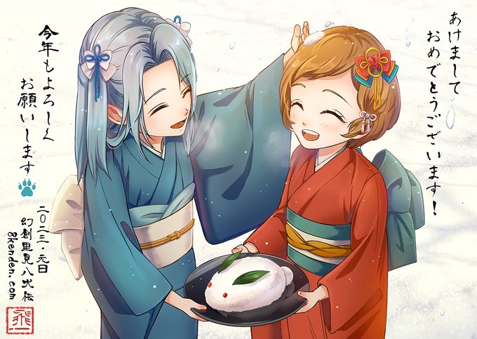 あけましておめでとうございます!🎍 旧年中は作品への応援ありがとうございました😊年賀絵は昨年描いた中でのMVPキャラとしてちび信乃・浜路をφ(˘ω˘*) 今年も八犬士中心にたくさん描いて創作に邁進していきます。今年もよろしくお願いします!🐕 #幻創里見八犬伝 #正月イラスト #HappyNewYear2023