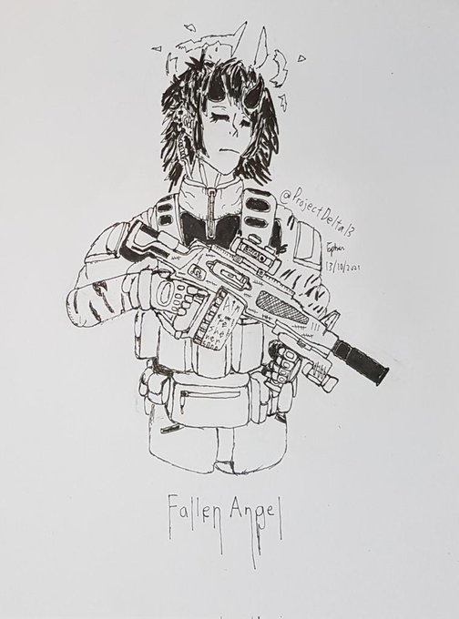 Portrait piece of Ava Ceras, @YourToxicMaid's PC for the bossfightuniverse subreddit. And my #inktober2021/#campaigntober submission. #tacticalart #miltober #mercenarysketch #revenant #demongirl #specoptober #merctober #inktober #inksketch