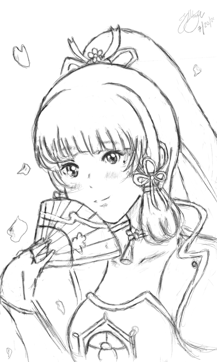 Inazuma is out today! Hoping Ayaka comes home tonight <3 This drawing is offering for her~ #genshinimpactfanart #genshinimpact #Ayaka #AyakaKamisato #KamisatoAyaka #art #drawing #sketchbook