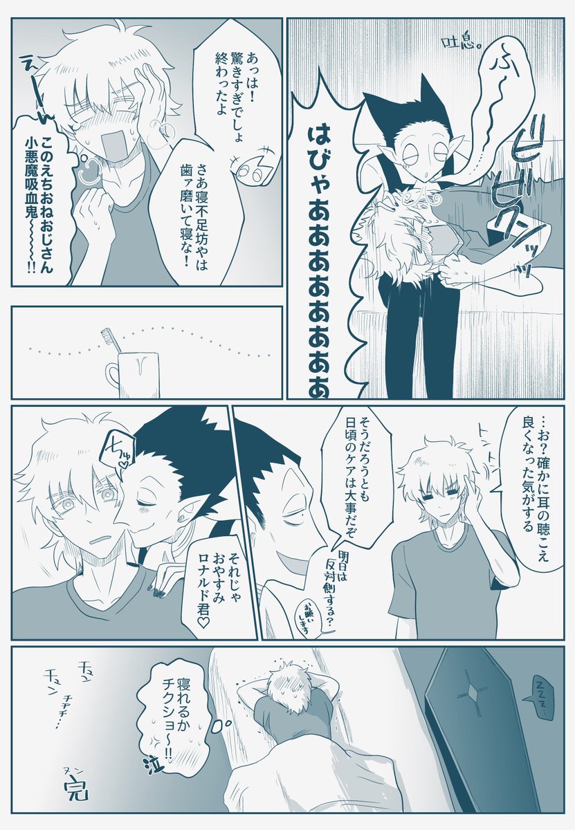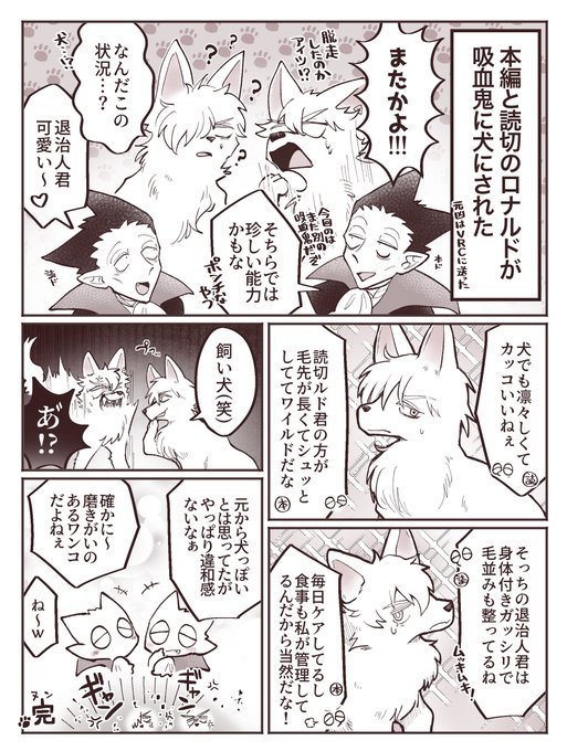 66 565 先月の犬ロナドラ新刊の間に合わなかったオマケページの完成版です😌 一応謎キューケツキにロ君が犬にされたことだけ分かれば読めます 23/02/13 21:26