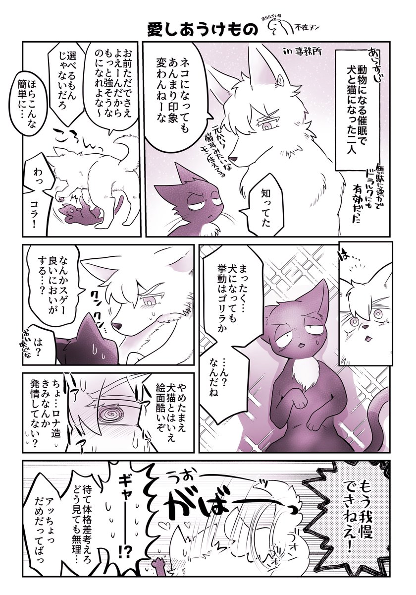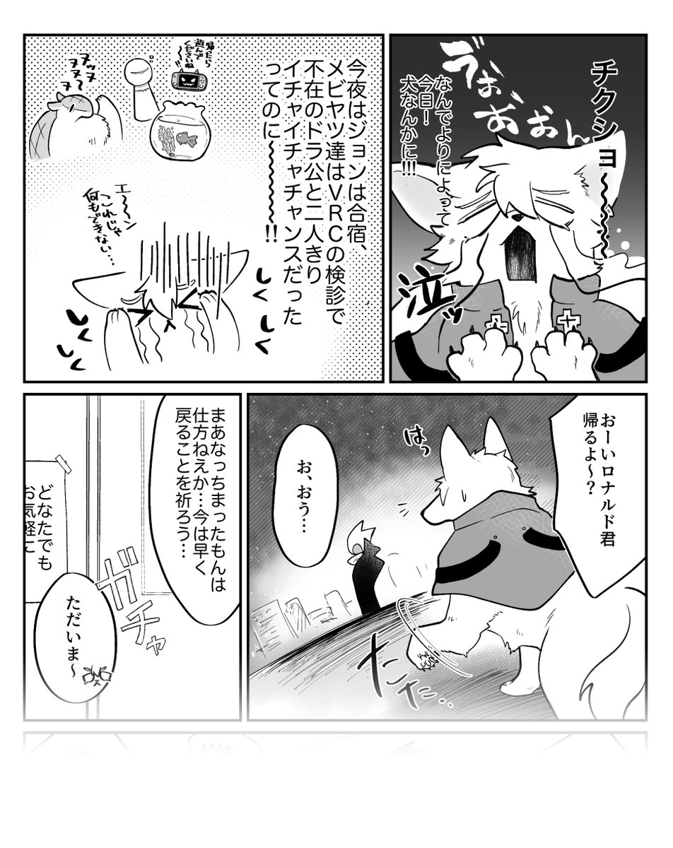 先月の犬ロナドラ新刊の間に合わなかったオマケページの完成版です😌 一応謎キューケツキにロ君が犬にされたことだけ分かれば読めます