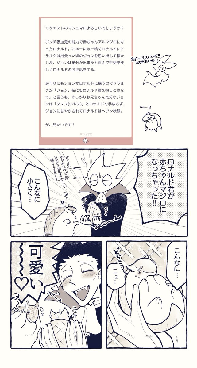277 1759 マシュマロにてリクエスト頂いてた、赤ちゃんマジロになったロ君の話です (ロナドラ+○) 23/04/02 08:37