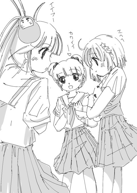 3 7 らくがき、#落書き、#ラクガキ @syukiodaさんと@ramiki_さん 最初、3人構図を描いた時らみきさんと同じ様なレイアウトでした。 莉愛ちゃんが難しくて結局全く別物を作成したのですが、これも完成させたく思ってます。自分の通常の書き方で着色してみたいのでよろしいですか? 23/08/17 01:22