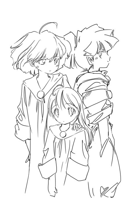 らくがき、#落書き、#ラクガキ @syukiodaさんと@ramiki_さん 最初、3人構図を描いた時らみきさんと同じ様なレイアウトでした。 莉愛ちゃんが難しくて結局全く別物を作成したのですが、これも完成させたく思ってます。自分の通常の書き方で着色してみたいのでよろしいですか?