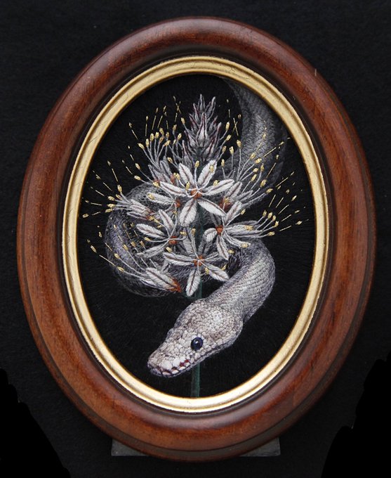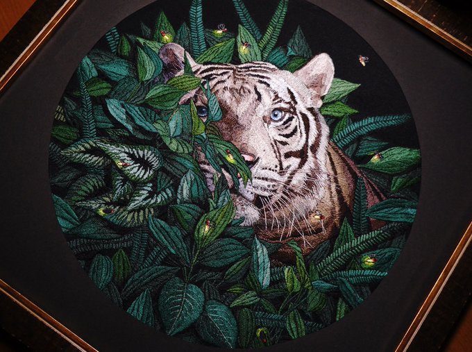 #新春芸術祭2023 お正月なので改めて自己紹介させて頂きます🙇♀️ 刺繍作家の秋月久璃沙(アキツキクリス)と申します☺️ 刺繍糸で主に神話に登場する動物や植物を表現しております🪡✨ お気軽にフォロー頂けますと幸いです💕 素敵なタグありがとうございます☺️