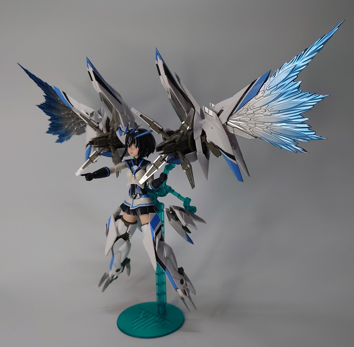 今更ながらにフレームアームズ「RVe-262 シュラフロゼ・シュヴァルベ」完成しました 各部に搭載された青いベリルユニットから闇夜に怪しく光る軌跡を残す強襲型FAです #フレームアームズ #今月作ったプラモを晒そうぜ