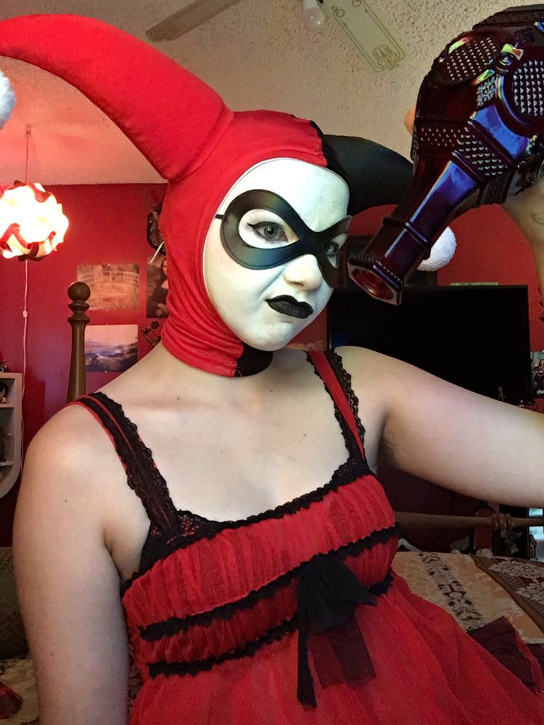 Making a few new cute accessories for my Harley and I really love how the ruff looks with the cowl #cosplay #dccomics #HarleyQuinn