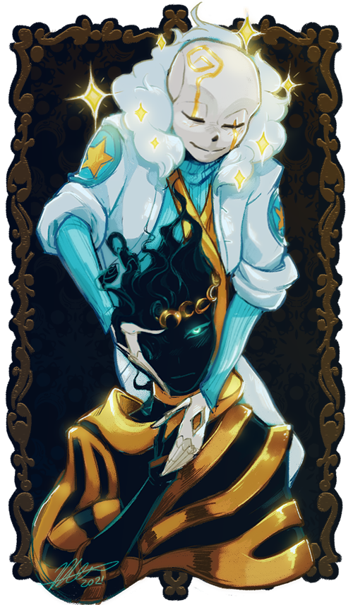 They make for an elegant, strange pair. Reverie loves his smokey Ephialtes. ✨💛🖤✨ #nightmareelphialtes #Gdream #reverieGdream #tippingscalesAU #omentales #undertaleAU #dreamtaleAU