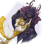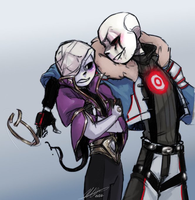 A widdle scribble of Slasher teasing Emperor, who is none too pleased to have his broken crown toyed with. Teehee. #undertaleAU #slasherKillersans #Emperornightmare #uncorruptednightmare