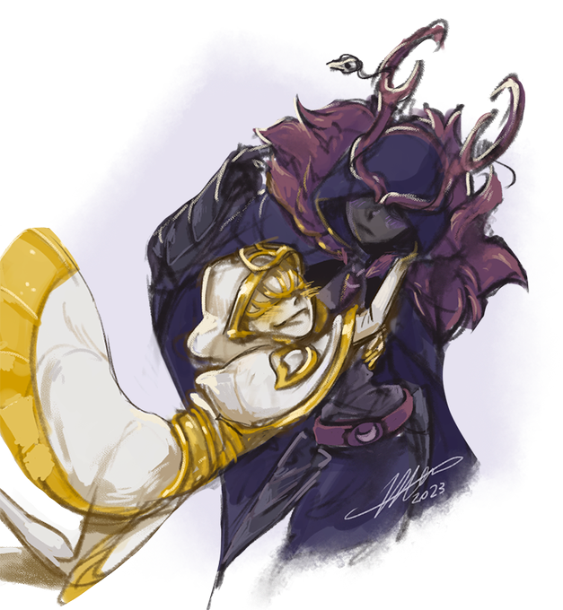 Vidar and Oneiros sketcheroo. Not the healthiest couple, but still one of my favs ekekek. Oneiros belongs to @wishingstarjar #omentale #tippingscalesAU #oneirosDream #vidarknightmare