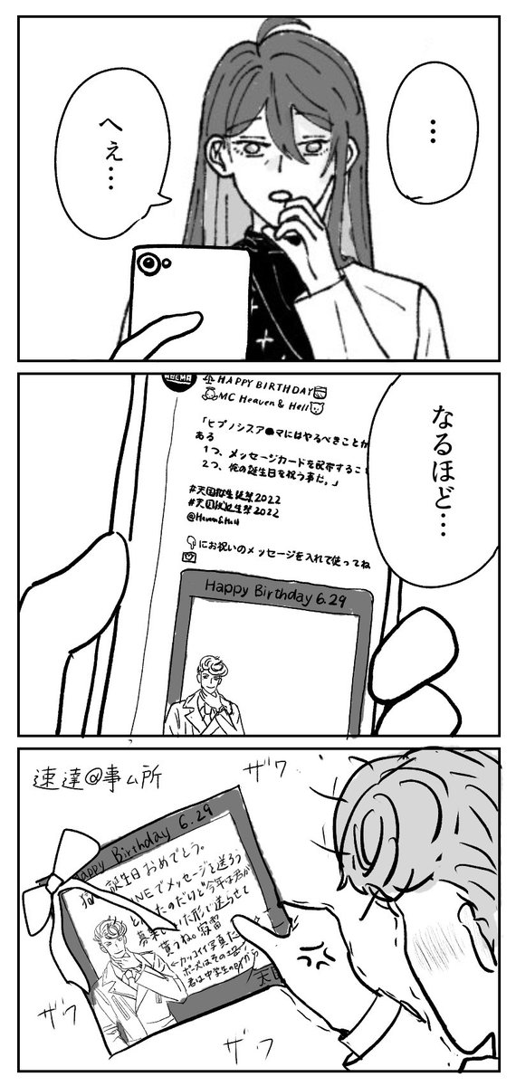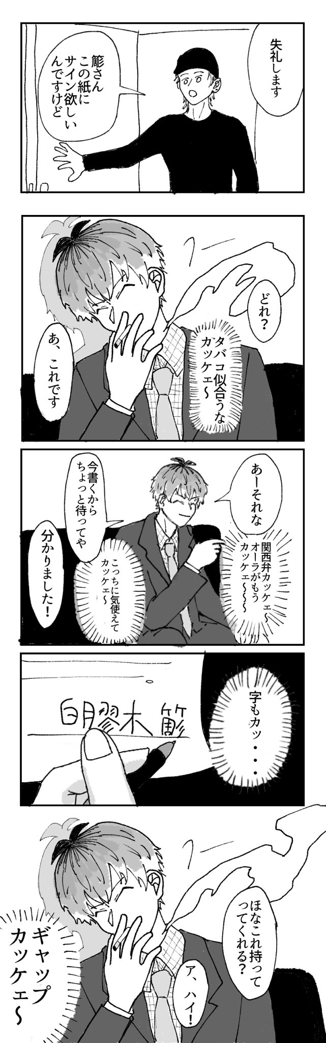 自分のスマホが水没した実体験を活かして盧笙が簓のスマホを水没させる漫画を描きました。