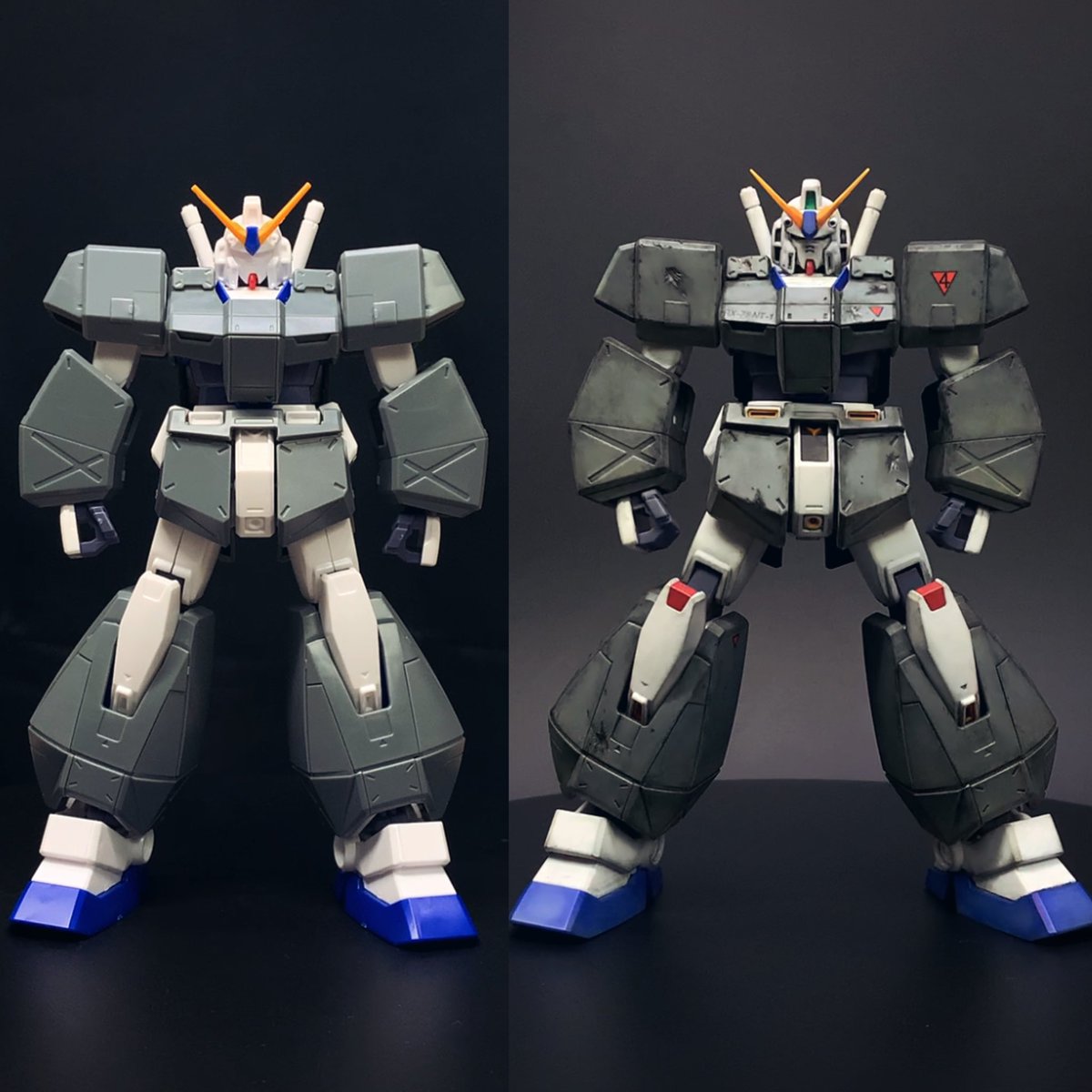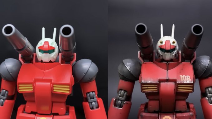 HGUCガンキャノン成型色仕上げ比較。 左 仮組み 右 完成品 プラスチックの軽い感じから重量感のある質感に仕上がったと思います🤩 #機動戦士ガンダム #ガンプラ #ガンプラの画像貼るとRTされると聞いて twitter.com/PuraAto_Chan…