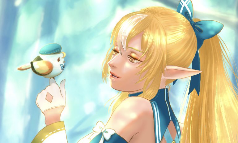 ぼかしと加算を練習し始めて結構良くなってきてる…気がする…… お顔がかわいく描けたのではないかと! #しらぬえ