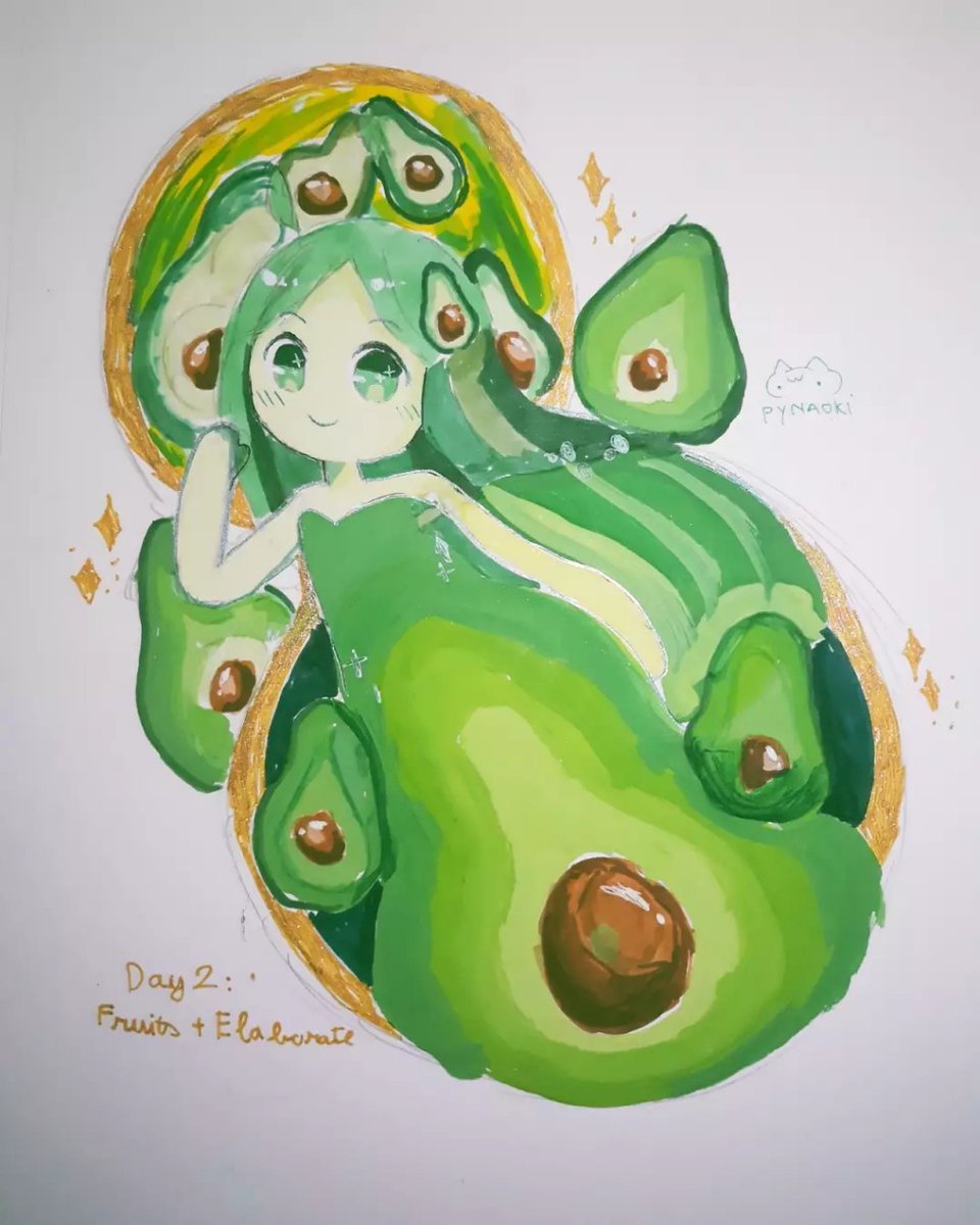 Day 2: Fruits+Elaborate. Join on Instagram #inktober2021 #inktober #gongtober #cutegirltober2021 #traditionalart #animeartstyle #cuteart #smallartist