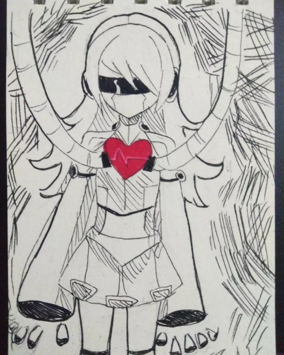 Day 6: Robot+Pendant. Join on Instagram #inktober2021 #inktober #gongtober #cutegirltober2021 #traditionalart #animeartstyle #cuteart #smallartist #inktoberday7