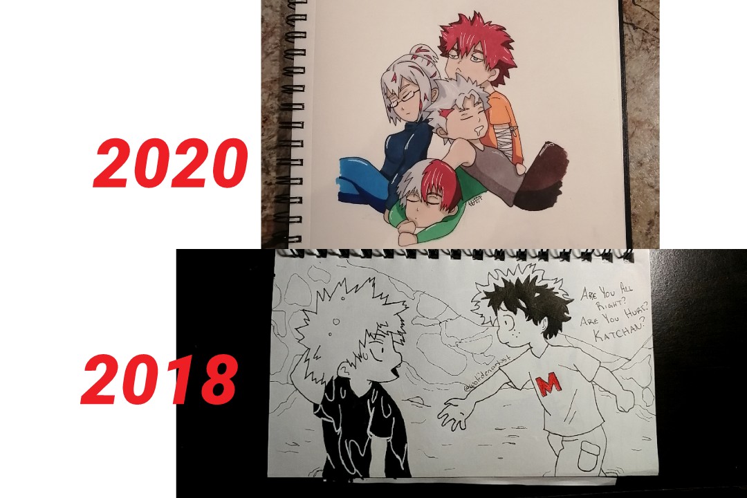 Kamisero Inktober 2020 day 8: Favorite Friendship | You can definitely see the improvement in this one from 2 years ago! | #inktober #inktober2020 #mha #bnha #myheroacademia #kaminari #sero #Kamisero #bokunoheroacademia #art #artist #drawing #fanart #friendship #friendgoals