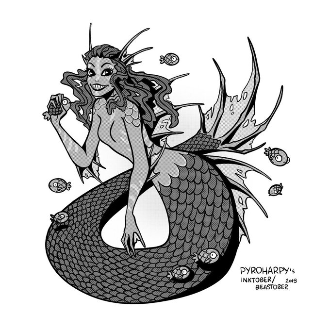 1 4 Again #inktober #beastober 2019 Mermaid and Harpy 🌚🌝 22/04/19 13:03