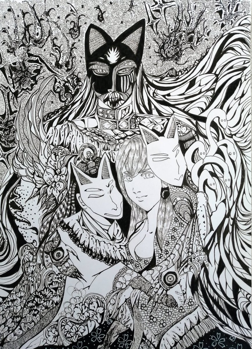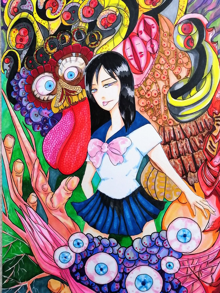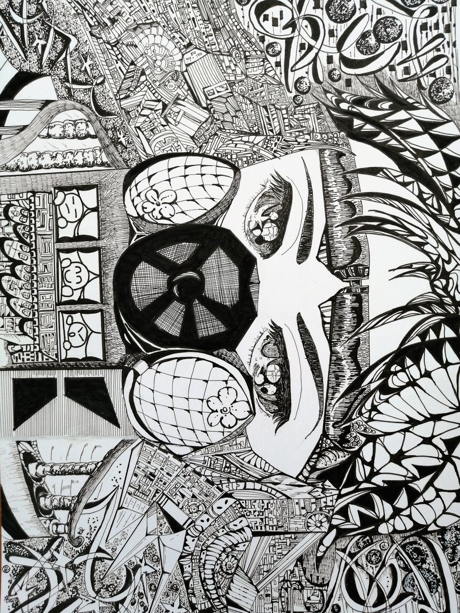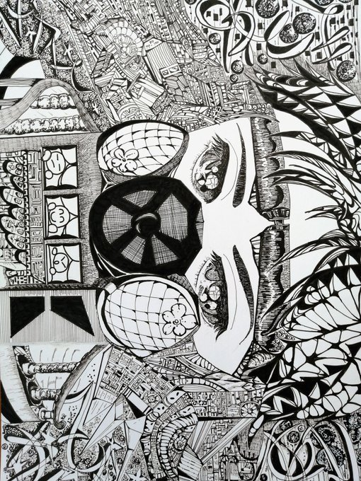 #私の絵柄が性癖に刺さる人に届いてほしい #ペン画 #アナログ絵 #アナログ絵描きさんと繋がりたい #イラスト好きな人と繋がりたい よくみると、気持ち悪さが じわりと来る絵 へ(^^へ) 妖精さんを描くつもりでした✨