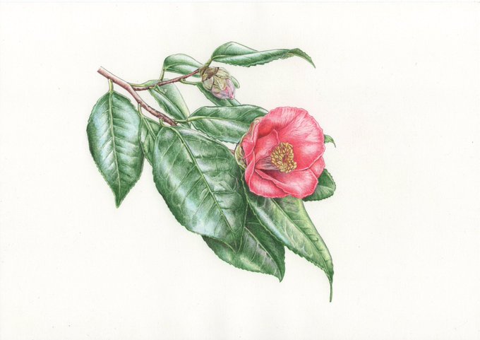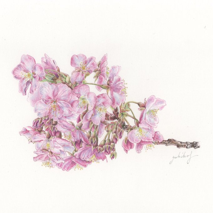 カワヅザクラ 今年も描いてしまいました。 今満開です🌸🌸 #色鉛筆画 #絵描きさんと繫がりたい #イラスト好きな人と繋がりたい #coloredpencildrawing #botanicalart