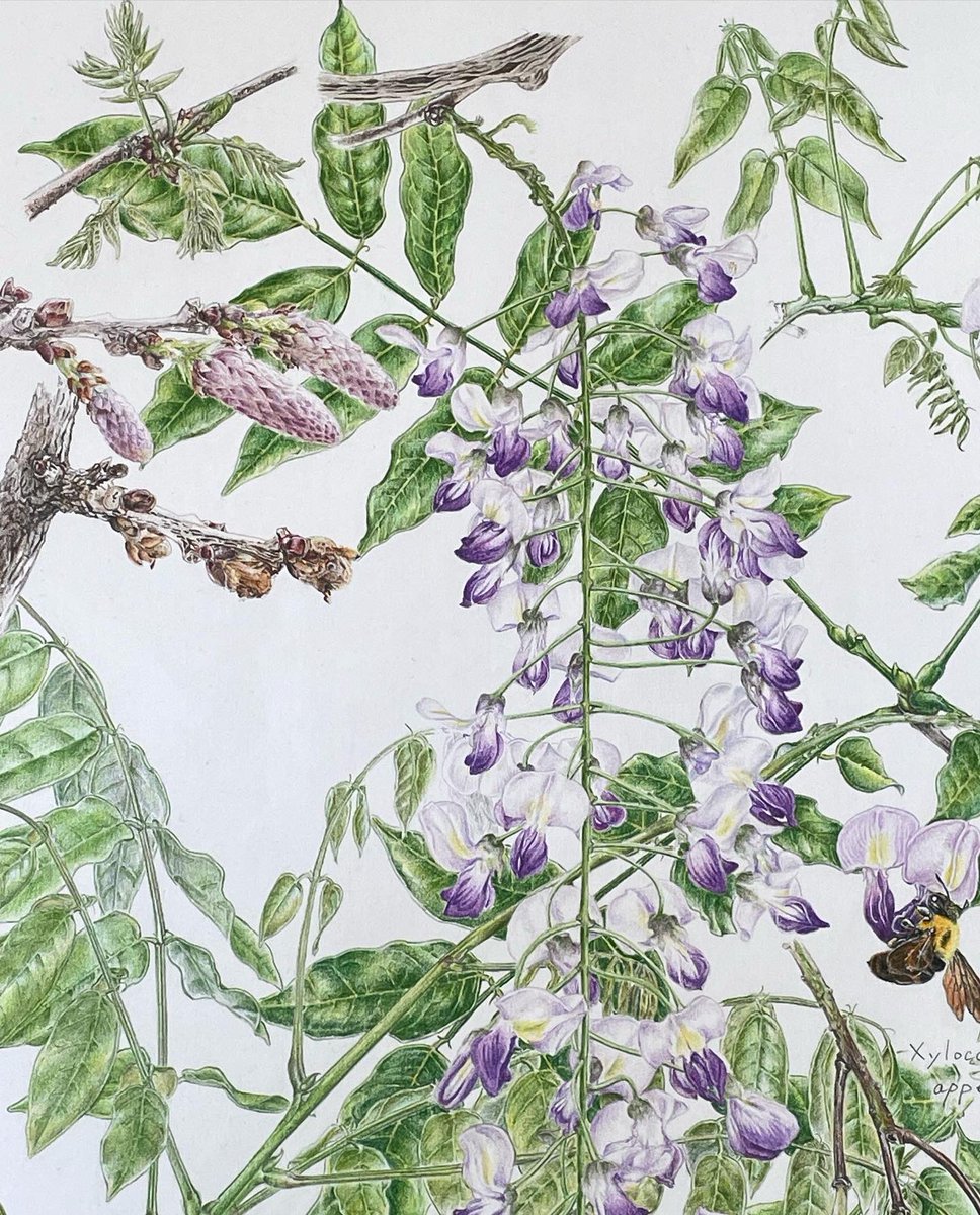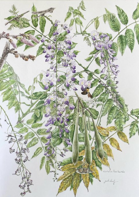 フジ Wisteria floribunda マメ科 1年追いかけてみました。 #botanicalart #色鉛筆画 #植物 #絵描きさんと繋がりたい #イラスト好きな人とつながりたい #ボタニカルアート