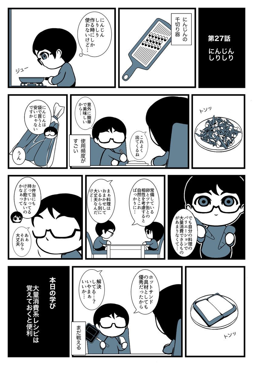 3 76 第27話「にんじんしりしり」 #漫画が読めるハッシュタグ #日常漫画 #夫婦漫画 #エッセイ漫画 #絵日記 #コミックエッセイ #料理 #大量消費 22/10/01 00:18