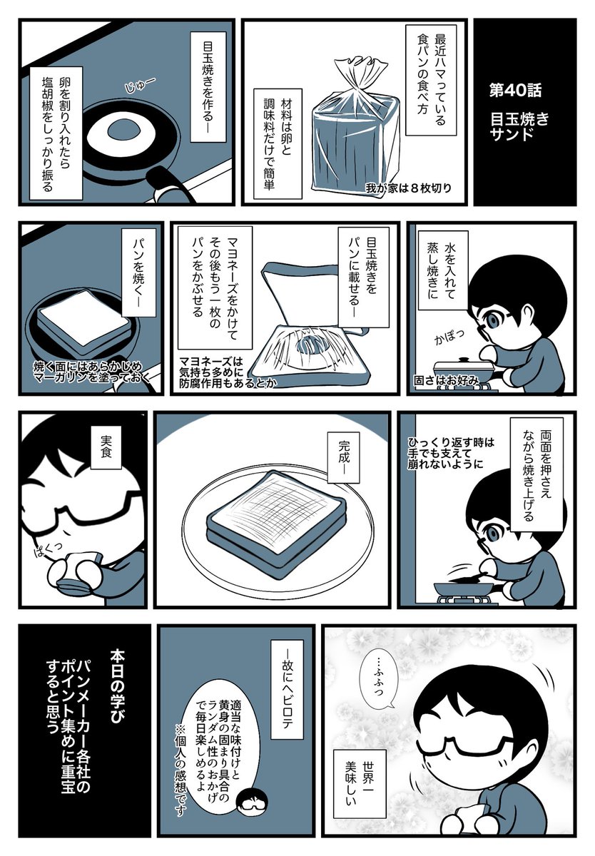 第40話「目玉焼きサンド」 #漫画が読めるハッシュタグ #日常漫画 #夫婦漫画 #エッセイ漫画 #絵日記 #コミックエッセイ #料理 #目玉焼きサンド
