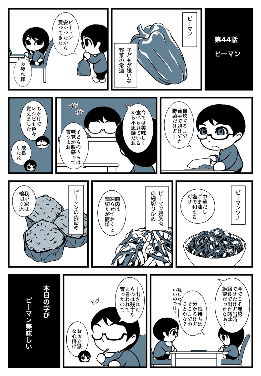 5 54 第44話「ピーマン」 #漫画が読めるハッシュタグ #日常漫画 #夫婦漫画 #エッセイ漫画 #絵日記 #コミックエッセイ #料理 #ピーマン 23/02/17 20:06