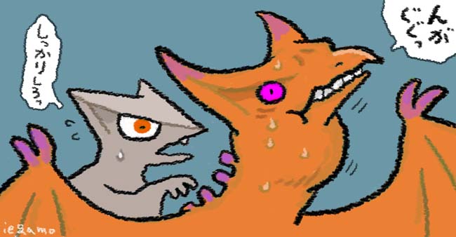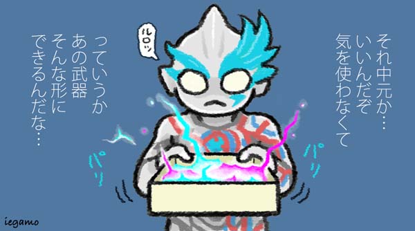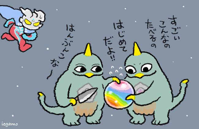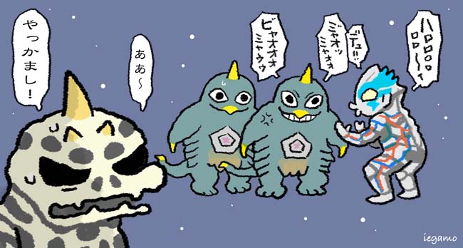 #ベムスター52周年 『ウルトラマン ニュージェネレーションスターズ』の黒幕、エディオムが 最終回でゼロと別れたあとベムスターにとっつかまる妄想絵。 番組終了時に描いたがあげ忘れてたもの。