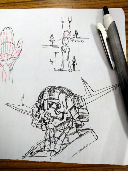 0 4 今日の落書き2。ジオングヘッド。元々ドクロイメージでデザインされてるみたいなことを思い出し骨感を強めに描いてみました。 23/04/03 13:04