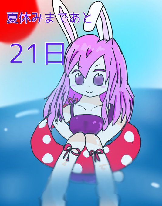 小学生のみんなー!夏休みまで21日!、、ってGoogleでみた! #小学生ではない #イラスト #日めくりイラストカレンダー #カレンダー #東方 #東方Project #鈴仙・優曇華院・イナバ #夏休み