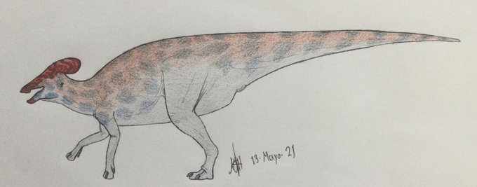 Tlatolophus galorum (References below) #drawing #paleoart #Tlatolophus #hadrosauridae #lambeosaurinae