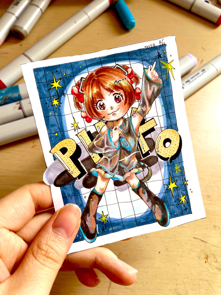 7 68 #イラスト #アナログイラスト #ピノコ #絵描きさんと繋がりたい ミクピノコでチェキ風に描いてみました😚💖💖 ハサミで切り取ったVer.の方がなんだか可愛い……🥹💘💘 23/03/11 13:25